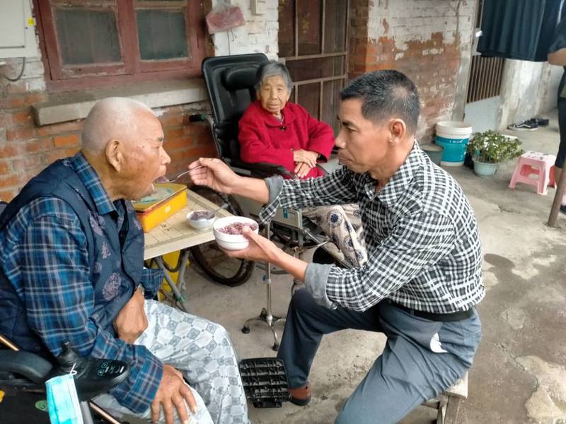 “天有不測風(fēng)云、人有禍福旦夕”,本來照顧一個癱瘓的父親,十幾年如一日就已經(jīng)足夠他忙碌的了,2015年70歲的老母親也患腦癱和心臟病,并伴有眼疾,視力幾乎失明。2019年由于眼睛視力低下,走路一不小心,又把腿摔斷了,造成生活不能自理,就這樣唐素強一個人一下子就承擔(dān)起兩位老人的照料工作,為了方便更好的照顧雙親,他就搬到父母的住處,他每天都要給父母雙親擦拭、按摩身體,洗腳、洗滌,平時老人會感到無聊,精神不振,唐素強就利用閑暇的時間陪著父母說話解悶,為了讓老人盡快康復(fù),自己從零學(xué)習(xí)康復(fù)方面的知識,挽扶老人進(jìn)行康復(fù)鍛煉,經(jīng)常用輪椅推著父親或母親外出,感受新鮮空氣,看看風(fēng)景,調(diào)節(jié)父母情緒。