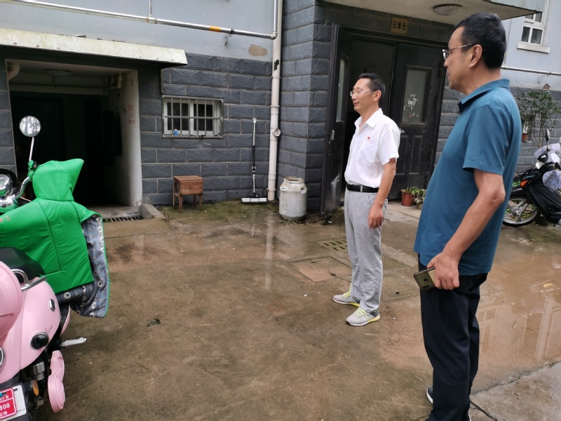9月29日早上6點,在新洋農(nóng)場域內(nèi),新洋社區(qū)的黨員干部們紛紛騎車到街道、小區(qū)查看積水情況。在城西2村,居委會主任蔡文良看到76號樓地下車庫積水后,及時安撫群眾情緒,并立即和水電綜合服務(wù)部主任郭小平聯(lián)系,通知工作人員前來排除積水。