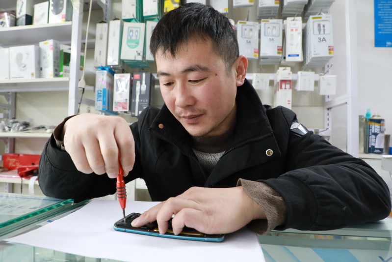 趙鵬維修手機(jī)技術(shù)獲居民肯定