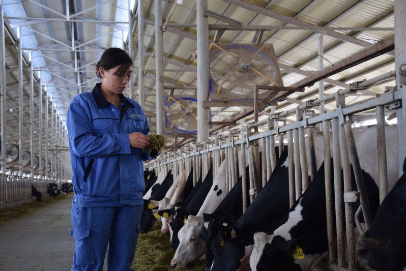 2020年,因?yàn)樾滦凸跔畈《痉窝渍谒僚叭珖?guó),肉蛋奶又是居民生活必需品。新冠肺炎疫情發(fā)生以來(lái),養(yǎng)殖業(yè)發(fā)展遇到新的困難,作為一名黨員,祝英告誡自己不能退縮,她主動(dòng)沖在生產(chǎn)第一線,為職工宣傳防疫知識(shí),與同事們一起放棄春節(jié)休假,一直奮戰(zhàn)在抗疫第一線,讓“小團(tuán)隊(duì)”發(fā)揮“大作用”。疫情就是命令,防控就是責(zé)任。戰(zhàn)“疫”號(hào)角吹響后,祝英坦言,“作為一名黨員,抗擊疫情,我必須時(shí)刻堅(jiān)守在第一線。”在困難面前,東旺公司生產(chǎn)幾乎沒(méi)有受到影響,產(chǎn)量穩(wěn)定、牛群健康狀況良好,這與一百多名與祝英一樣平凡的“逆行者”的努力是分不開(kāi)的。一個(gè)黨員就是一面旗幟,一個(gè)支部就是一座堡壘,祝英用行動(dòng)詮釋了一名共產(chǎn)黨員的初心和使命,展現(xiàn)一名新時(shí)代女性的責(zé)任與擔(dān)當(dāng),在平凡的崗位盡展巾幗風(fēng)采。(圖為祝英查看飼料情況)
