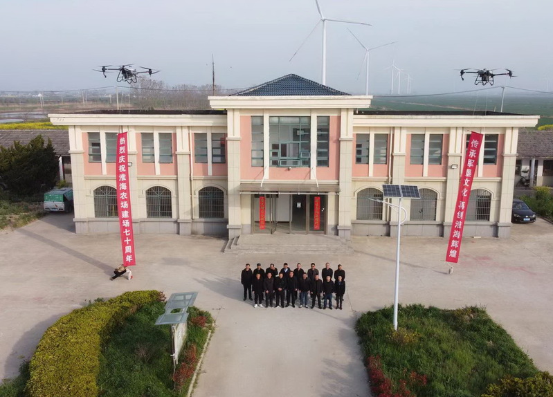 為體現(xiàn)本單位特色,七分場社區(qū)工會決定選擇日出時分和當(dāng)下最先進(jìn)的農(nóng)田植保機(jī)大疆T40表達(dá)對農(nóng)場的滿腔熱愛。為拍攝視頻,全體工作人員于10日凌晨五點有序排列在七分場海堤上等待日出,配合音樂,全心投入錄制視頻,用整齊劃一的口號表達(dá)了對農(nóng)場的祝福。“實力淮海、創(chuàng)新淮海、和諧淮海、美麗淮海”,一聲聲響亮的口號,是七分場全體工作人員的心聲,也代表著淮海人對農(nóng)場深深的愛意和祝福。在接下來的工作中,他們將堅守崗位、嚴(yán)格履職,用實際行動確保淮海發(fā)展勢頭持續(xù)穩(wěn)定,喜迎農(nóng)場成立70周年大慶。