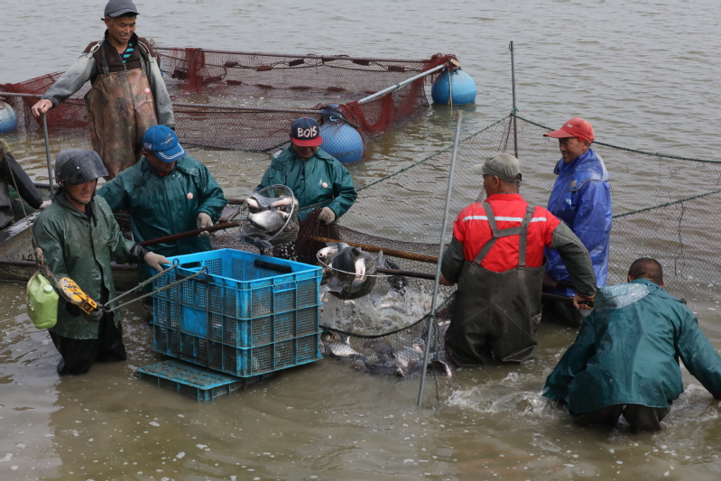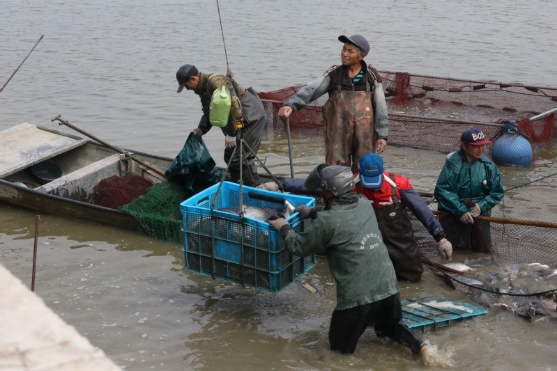 5月13日,寶應湖農(nóng)場劉圩養(yǎng)殖場養(yǎng)殖戶楊金林正在起捕塘口鳊魚。