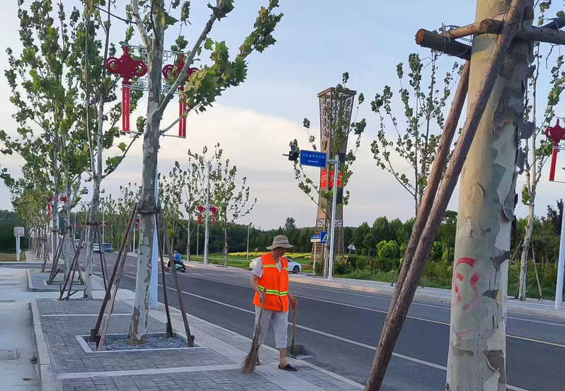 每天凌晨三四點開始,新洋環(huán)衛(wèi)人便穿梭于農(nóng)場主要干道和大街小巷之中進行保潔作業(yè)。露天保潔員最為辛苦,他們沒有太陽傘的“遮陰避涼”,沒有空調(diào)的“保駕護航”,一把掃帚、一雙“火眼金睛”是他們的工作工具,他們用奉獻詮釋著崗位職責,用雙手打造著“美麗新洋”。