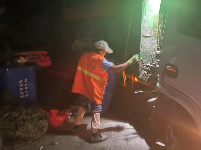 凌晨三點的三河,月色溫柔,滿天繁星。垃圾清運(yùn)車司機(jī)戴玉剛頭頂星光開始了一天的工作。