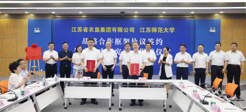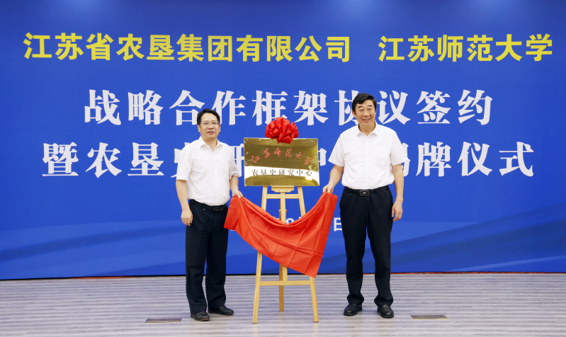8月10日上午,集團(tuán)公司與江蘇師范大學(xué)戰(zhàn)略合作框架協(xié)議簽約暨農(nóng)墾史研究中心揭牌儀式在徐州舉行。集團(tuán)公司黨委書記、董事長魏紅軍,江蘇師范大學(xué)黨委書記方忠出席并致辭。集團(tuán)公司黨委副書記、總經(jīng)理胡兆輝與江蘇師范大學(xué)黨委副書記、校長周汝光共同為江蘇師范大學(xué)農(nóng)墾史研究中心揭牌。集團(tuán)公司黨委副書記姚準(zhǔn)明與江蘇師范大學(xué)黨委常委、副校長蔡國春共同簽署《戰(zhàn)略合作框架協(xié)議》。江蘇師范大學(xué)農(nóng)墾史研究中心主任岑紅發(fā)言。集團(tuán)公司黨委委員、總會計師劉克英,黨委委員、紀(jì)委書記李旭東,副總經(jīng)理劉耀武,黨委委員、副總經(jīng)理王立新,黨委委員、工會主席楊義林,江蘇師范大學(xué)黨委常委、黨委宣傳部部長孟召學(xué),黨委常委、黨委統(tǒng)戰(zhàn)部部長、黨委辦公室主任商亮出席。