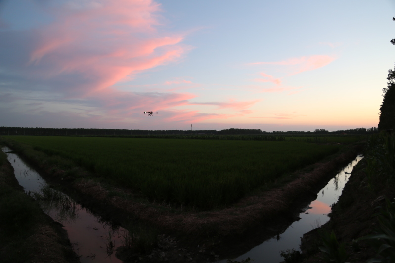 眼下正是水稻產(chǎn)量形成的關(guān)鍵時(shí)期,也是病蟲害高發(fā)時(shí)期。連日來,崗埠分公司組織農(nóng)業(yè)科、生產(chǎn)區(qū)農(nóng)技人員和大隊(duì)管理員,著眼紋枯病、稻曲病、稻縱卷葉螟、稻飛虱等高發(fā)病蟲害,深入田間展開排查統(tǒng)計(jì),分類施策,科學(xué)開展肥水管理和綠色防控,抓好4.5萬畝水稻的穗期管理工作。“無人機(jī)夜間對(duì)水稻進(jìn)行病蟲害綜合防治作業(yè),避開白天高溫作業(yè)風(fēng)險(xiǎn),大大提升作業(yè)效率,一臺(tái)無人機(jī)每小時(shí)可噴灑150畝,有力加速防治進(jìn)程。”崗埠分公司農(nóng)業(yè)中心負(fù)責(zé)人表示,無人機(jī)飛防不僅作業(yè)效率快,防治效果好,減少農(nóng)藥使用量,降低農(nóng)業(yè)生產(chǎn)成本,且能大大降低勞動(dòng)強(qiáng)度,一舉多得。當(dāng)前正是穗期水稻病蟲害綜合防治關(guān)鍵節(jié)點(diǎn),分公司共組織無人機(jī)40余臺(tái),采取夜間操作,確保在規(guī)定防治時(shí)間內(nèi)完成防治任務(wù),為秋糧豐收打好基礎(chǔ)。