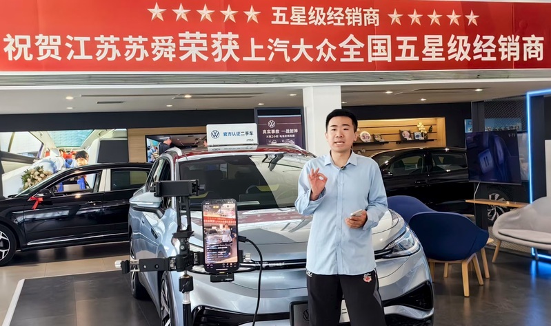 蘇舜公司創(chuàng)新“直播+服務(wù)”銷售模式,重點(diǎn)發(fā)力“抖音、小紅書”等平臺,加大直播場次與粉絲互動,將留資轉(zhuǎn)化率提升至12%,平均觀看時長達(dá)到23分鐘。圖為工作人員在直播間提供二手車在線置換評估、金融方案計(jì)算等服務(wù)。