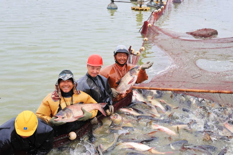 9月15日,江蘇省連云港市海州區(qū)的江蘇農(nóng)墾崗埠農(nóng)場,水產(chǎn)工人們在魚塘里拉網(wǎng)捕撈分揀花鰱、白鰱等水產(chǎn)品,準備發(fā)往周邊市場銷售。