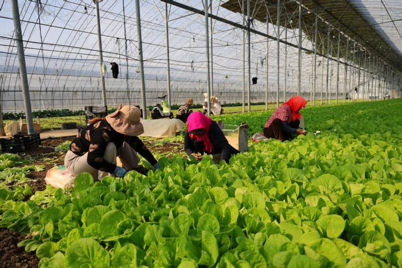 10月23日,江蘇省連云港市海州區(qū)的江蘇農(nóng)墾崗埠農(nóng)場(chǎng),訂單蔬菜喜獲豐收。菜農(nóng)們?cè)诖笈锢锊墒照硇迈r的蔬菜,并進(jìn)行打包稱重,田間地頭一片繁忙景象。近年來(lái),當(dāng)?shù)卮罅Πl(fā)展規(guī)?;笈锸卟朔N植,采取“市場(chǎng)+訂單+農(nóng)戶”的方式,促進(jìn)菜農(nóng)增收。