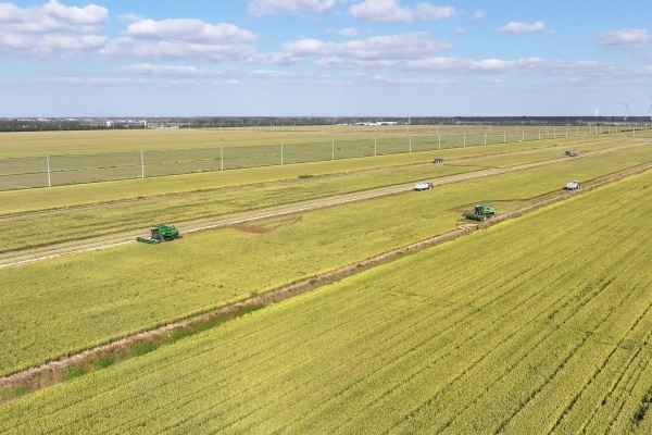 滿目金黃的稻田里,一棵棵水稻長(zhǎng)勢(shì)喜人,稻穗腰身低垂,微風(fēng)吹過(guò),稻香陣陣。遠(yuǎn)處,無(wú)人收割機(jī)正在北斗導(dǎo)航的指引下,按照既定軌跡作業(yè),切割、脫粒、粉碎等一氣呵成,同步作業(yè)的無(wú)人耕地機(jī)將稻田平整,準(zhǔn)備投入新一季農(nóng)作物種植。