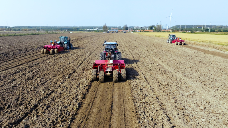 江蘇農(nóng)墾土地資源開(kāi)發(fā)有限公司積極開(kāi)展土地平整作業(yè),多臺(tái)大型農(nóng)機(jī)在開(kāi)闊的田塊上協(xié)同高效作業(yè),經(jīng)過(guò)精準(zhǔn)翻耕、壓實(shí)與找平,原本零散破碎的地塊逐步重塑為連片規(guī)整的高標(biāo)準(zhǔn)農(nóng)田。