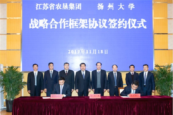 11月18日上午,江蘇農(nóng)墾與揚(yáng)州大學(xué)戰(zhàn)略合作框架協(xié)議簽約儀式在揚(yáng)大荷花池校區(qū)舉行。集團(tuán)公司黨委書記、董事長(zhǎng)魏紅軍、揚(yáng)州大學(xué)黨委書記姚冠新出席儀式并講話,揚(yáng)州大學(xué)校長(zhǎng)焦新安主持簽約。集團(tuán)公司副總經(jīng)理