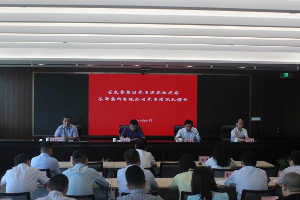 根據(jù)集團(tuán)黨委巡察工作領(lǐng)導(dǎo)小組的安排,9月23日,集團(tuán)黨委巡察組向蘇舜黨委反饋巡察情況。孫繼洲同志主持會議并作表態(tài)發(fā)言?! 「鶕?jù)集團(tuán)黨委統(tǒng)一部署,2019年6月10日至6月23日,集團(tuán)黨委巡察組對蘇