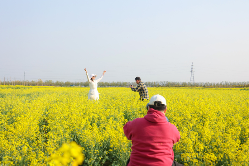 近日,在云臺(tái)農(nóng)場(chǎng)云水灣濕地公園,百畝油菜花競(jìng)相綻放,園區(qū)以花為媒,開展主題為“金色花?!废碓扑钡馁p花活動(dòng),吸引了大批游客游玩。