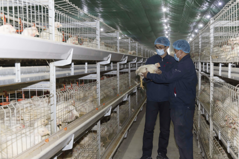1月12日晚8點半,雖然溫度已降至零下,料峭寒意卻擋不住東米人的火熱干勁。大家快速地做好苗雞搬運(yùn)、分揀、入籠等工作,減少溫差帶來的雞群應(yīng)激反應(yīng)。隨著最后一車雞苗裝卸完畢,新年首批93萬羽苗雞順利入住新家,為東辛東米公司奮力奪取首季“開門紅”、完成全年目標(biāo)任務(wù)打牢堅實基礎(chǔ)。走進(jìn)現(xiàn)代化籠養(yǎng)雞舍,自動化喂食飲水裝置應(yīng)有盡有,5列3層“樓房”整齊排布,籠內(nèi)已提前備好“營養(yǎng)餐”,工人們對剛運(yùn)送進(jìn)來的雛雞逐一進(jìn)行“體檢”,并按照每籠82羽苗雞標(biāo)準(zhǔn),小心翼翼地分揀入籠。在34度恒溫的新家中,雛雞很快適應(yīng)新環(huán)境,開始愉快地自主進(jìn)食?!霸谶@里可以實現(xiàn)分區(qū)調(diào)節(jié)雞舍溫度、濕度、風(fēng)量等,各項關(guān)鍵數(shù)據(jù)一覽無遺。自從采用精準(zhǔn)數(shù)字化飼養(yǎng)模式后,不僅養(yǎng)雞效率提高了,還節(jié)約了人力成本,肉雞養(yǎng)殖更加科學(xué)高效?!奔夹g(shù)員葉林來一邊介紹一邊熟練操作著智能化中控系統(tǒng)?!靶碌囊荒暌馕吨碌拈_始。東升雞場在肉雞養(yǎng)殖技術(shù)上不斷總結(jié)經(jīng)驗與不足,持續(xù)強(qiáng)化內(nèi)部管理,通過多組實驗數(shù)據(jù)分析,將在舍內(nèi)通風(fēng)頻次和溫度把控上進(jìn)一步調(diào)整和細(xì)化,調(diào)控好內(nèi)部環(huán)境,防止細(xì)菌滋生,降低肉雞淘汰率,力爭出欄肉雞各項指標(biāo)優(yōu)于市場標(biāo)準(zhǔn)?!睎|升雞場場長李東輝滿懷信心地