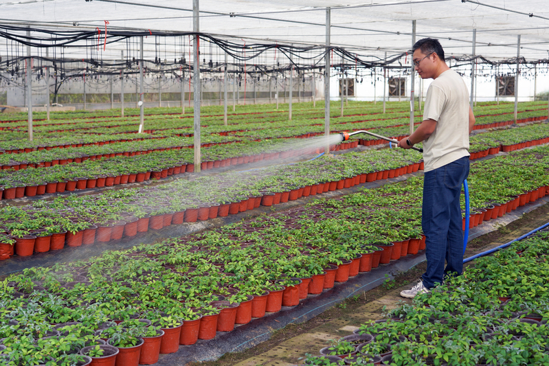 初秋時節(jié),走進(jìn)新洋農(nóng)場容器苗項目基地,素有“百日紅”之稱的紫薇花進(jìn)入了盛花期?;毓芾砣藛T梁亞洲正在為紫薇花瓶噴施營養(yǎng)液,順手修剪掉雜枝,為紫薇健康生長提供保障。紫薇花期長,是觀花、觀干、觀根的盆景良材,一棵培育良好、株高2米的紫薇花瓶容器苗木市場價可達(dá)2000元以上,具有良好的經(jīng)濟(jì)效益和景觀效果。“針對秋季紫薇生長特點(diǎn),我們還集中對紫薇進(jìn)行了抹芽、修枝、除草,保證苗木生長良好、發(fā)育健壯、形狀優(yōu)美。”梁亞洲說,紫薇是一種綠化點(diǎn)綴效果很好的觀賞苗木,尤其是夏秋季道路綠化開花小喬木不多,紫薇正好填補(bǔ)了這個季節(jié)的空白。2020年以來,新洋建成配有溫室大棚、水肥一體、智能控制、基質(zhì)配方、節(jié)水灌溉等設(shè)備的容器苗圃200畝,主打球類、造型類、花喬類等綠化苗木產(chǎn)品近萬株。在栽培方式上,林業(yè)公司大膽嘗試,自行研發(fā)優(yōu)化不同容器苗基質(zhì)配比,開展扦插培育試驗,實(shí)現(xiàn)了自繁自育栽培技術(shù)的新突破?!斑@黑色薄膜包裹的是控根器,由于現(xiàn)在溫度較高,水分蒸發(fā)快,容器苗基質(zhì)易缺水,要及時引水灌溉,濕透苗床,以保持土壤濕潤。”林業(yè)公司副總經(jīng)理蔡仿介紹,針對當(dāng)前溫度過高的情況,管理人員在后臺打開自動化噴淋設(shè)備,一體化水肥系統(tǒng)在