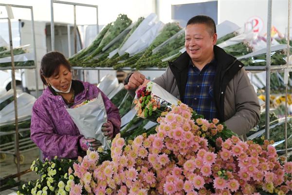 走進(jìn)富民農(nóng)業(yè)科技園14號(hào)大棚,雛菊鮮切花成熟上市,工人們正在溫室大棚里挑選裁切雛菊花。在包裝車間內(nèi),工人們正在整理數(shù)以萬(wàn)計(jì)的雛菊,去掉多余枝葉,整理包裝成一束束精美的花束,不遠(yuǎn)處的三大排貨架上,全部都是五顏六色的雛菊。“我們園區(qū)種植了5個(gè)大棚的雛菊,約二三十個(gè)品種共15萬(wàn)枝,現(xiàn)在相繼進(jìn)入采摘期?,F(xiàn)在園區(qū)一邊采摘雛菊,一邊忙著整理包裝,準(zhǔn)備供應(yīng)山東客商?!眻@區(qū)副主任魏建東介紹說(shuō),剛上市的雛菊每天采摘量在2000枝以上,往后會(huì)越來(lái)越多,不斷滿足市場(chǎng)需求。隨著社會(huì)經(jīng)濟(jì)的發(fā)展和人們生活水平的提高,鮮花逐漸成為更多人裝扮生活的必需品,消費(fèi)理念的改善促使鮮切花品種結(jié)構(gòu)日趨豐富。其中,雛菊以其色彩繁多、花型多樣、瓶插期長(zhǎng)、耐運(yùn)輸、清新動(dòng)人的花姿,受到廣大消費(fèi)者喜愛(ài)追捧。崗埠農(nóng)場(chǎng)公司緊盯市場(chǎng)需求,大力發(fā)展多元鮮切花種植,引進(jìn)新品種、新技術(shù),積極探索發(fā)展新路徑新模式,走特色鮮花發(fā)展之路。“當(dāng)前,我們園區(qū)大力發(fā)展鮮切花產(chǎn)業(yè),從種植、包裝、銷售逐步升級(jí),進(jìn)一步轉(zhuǎn)變經(jīng)營(yíng)模式,提高產(chǎn)業(yè)效能。在提高集體經(jīng)濟(jì)效益的同時(shí),發(fā)揮示范帶頭作用,為花農(nóng)的種植經(jīng)營(yíng)創(chuàng)造更有利條件,在增加場(chǎng)域就業(yè)上做文章,爭(zhēng)取實(shí)現(xiàn)社會(huì)效益的最大