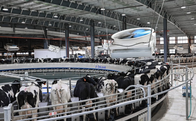 AI攝像頭、溫濕度傳感器、智能項(xiàng)圈、電子耳標(biāo)……人工智能、物聯(lián)網(wǎng)、大數(shù)據(jù)系統(tǒng)集成聯(lián)動(dòng),一臺(tái)臺(tái)自動(dòng)化設(shè)備在存欄8300余頭奶牛的牧場(chǎng)內(nèi)高效運(yùn)轉(zhuǎn)。這是蘇墾優(yōu)然牧業(yè)生態(tài)智慧牧場(chǎng)內(nèi)的一幕,也是江蘇農(nóng)墾推進(jìn)智慧農(nóng)業(yè)發(fā)展,實(shí)現(xiàn)農(nóng)業(yè)生產(chǎn)數(shù)字化的典型場(chǎng)景。大數(shù)據(jù)管理平臺(tái)將牧場(chǎng)繁殖、疾病、轉(zhuǎn)群、防疫、營(yíng)養(yǎng)、DHI、成本等生產(chǎn)數(shù)據(jù)收集匯總,實(shí)現(xiàn)生產(chǎn)管理數(shù)字化、流程化、智能化,大幅提高了鮮奶的產(chǎn)量和質(zhì)量,鮮奶質(zhì)量?jī)?yōu)于歐盟標(biāo)準(zhǔn),牧場(chǎng)成功入選2022年智慧江蘇重點(diǎn)工程。蘇墾優(yōu)然智慧牧場(chǎng)建設(shè)主要分為數(shù)字化信息綜合平臺(tái)、牧場(chǎng)智能化設(shè)備、實(shí)時(shí)監(jiān)控、無(wú)線網(wǎng)絡(luò)覆蓋及數(shù)據(jù)中心。無(wú)線網(wǎng)絡(luò)覆蓋為監(jiān)控設(shè)備與智能化硬件設(shè)備提供網(wǎng)絡(luò)服務(wù),實(shí)現(xiàn)牧場(chǎng)智能化設(shè)備數(shù)據(jù)的實(shí)時(shí)上傳和監(jiān)控設(shè)備實(shí)時(shí)監(jiān)控。大數(shù)據(jù)駕駛艙共分為17個(gè)模塊,展示牧場(chǎng)位置及牧場(chǎng)總體概況數(shù)據(jù),包括牧場(chǎng)實(shí)時(shí)存欄、生態(tài)環(huán)保、飼養(yǎng)分級(jí)、圈舍分布、通知咨詢等。物聯(lián)網(wǎng)賦能提質(zhì)添智。在蘇墾優(yōu)然牧場(chǎng),飼養(yǎng)員每天早上都會(huì)打開手機(jī),“智慧養(yǎng)殖系統(tǒng)相當(dāng)于給每頭奶牛頒發(fā)了可自動(dòng)采集數(shù)據(jù)的電子身份證,個(gè)體牛只基本檔案一牛一碼、一目了然,查看奶牛身體狀況更加方便了。”原來(lái)還要為牛舍的事進(jìn)進(jìn)出出,現(xiàn)在只